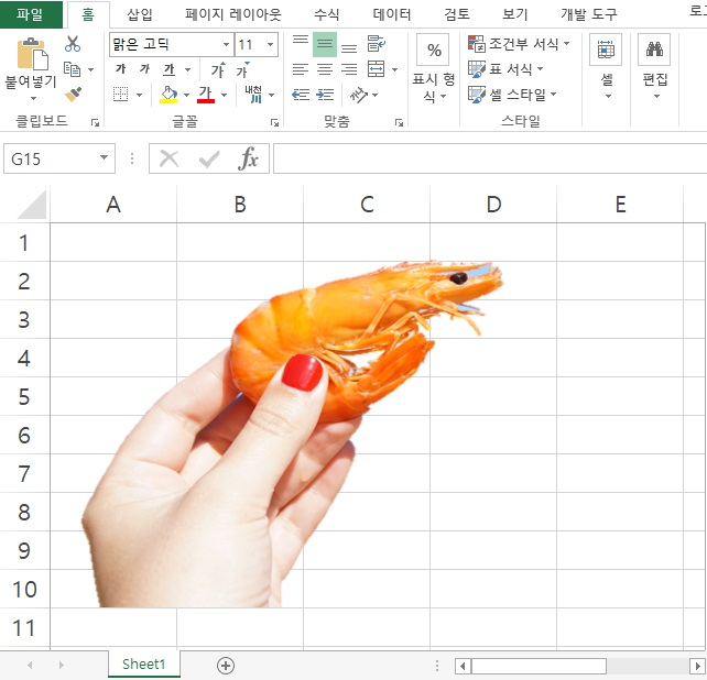 이제 작업이 종료되면 아무 셀이나 클릭하면 결과물이 나옵니다. 이제 결과물을 복사(Ctrl + c)하여 원하는 곳에 붙여 넣으면 하단 그림과 같이 배경이 제거된 자료로 사용할 수 있습니다.