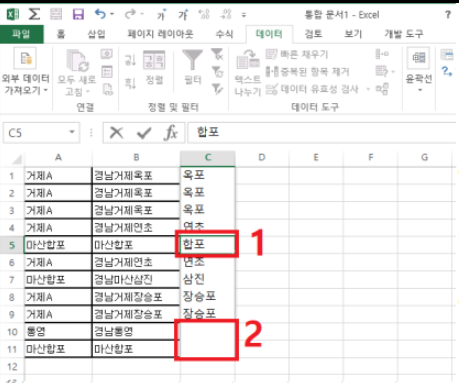 ① 셀에 [합포]라는 글자를 입력하고 다시 엔터를 쳐줍니다.