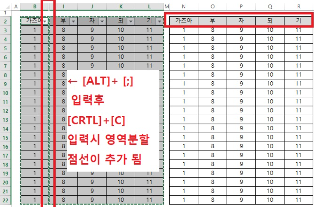 ④ 원하는 영역에 붙여넣기한다 : [Ctrl] + [V]