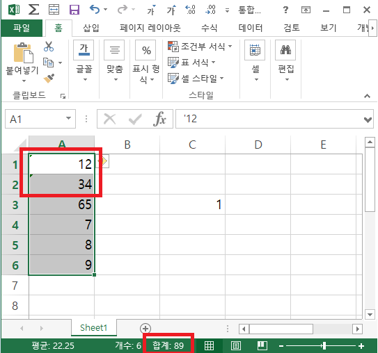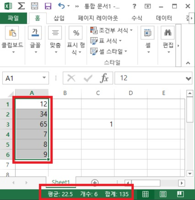 첫번째 해결방법입니다. 아래 방법대로 조치하시면 정상적으로 엑셀 하단 요약통계자료에 평균, 합계, 개수가 출력됩니다.