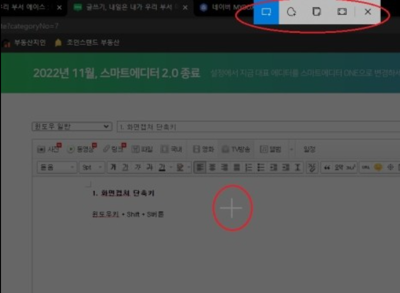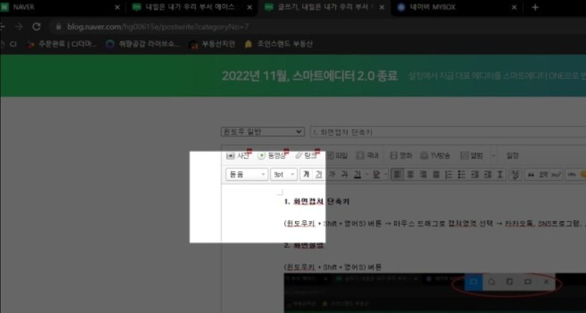 ①위 사진과 같이 드래그를 하면, 캡쳐할 영역만 밝게 변합니다.