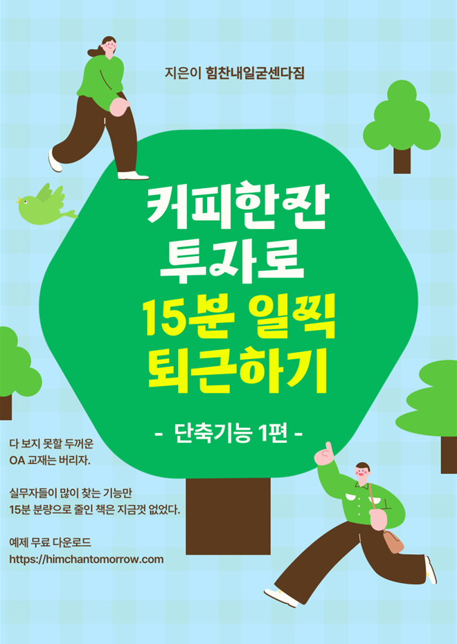 | 커피한잔 투자로 15분 일찍 퇴근하기 -엑셀 1편- 전자책 무료나눔 (29) | 2023.10.08 |