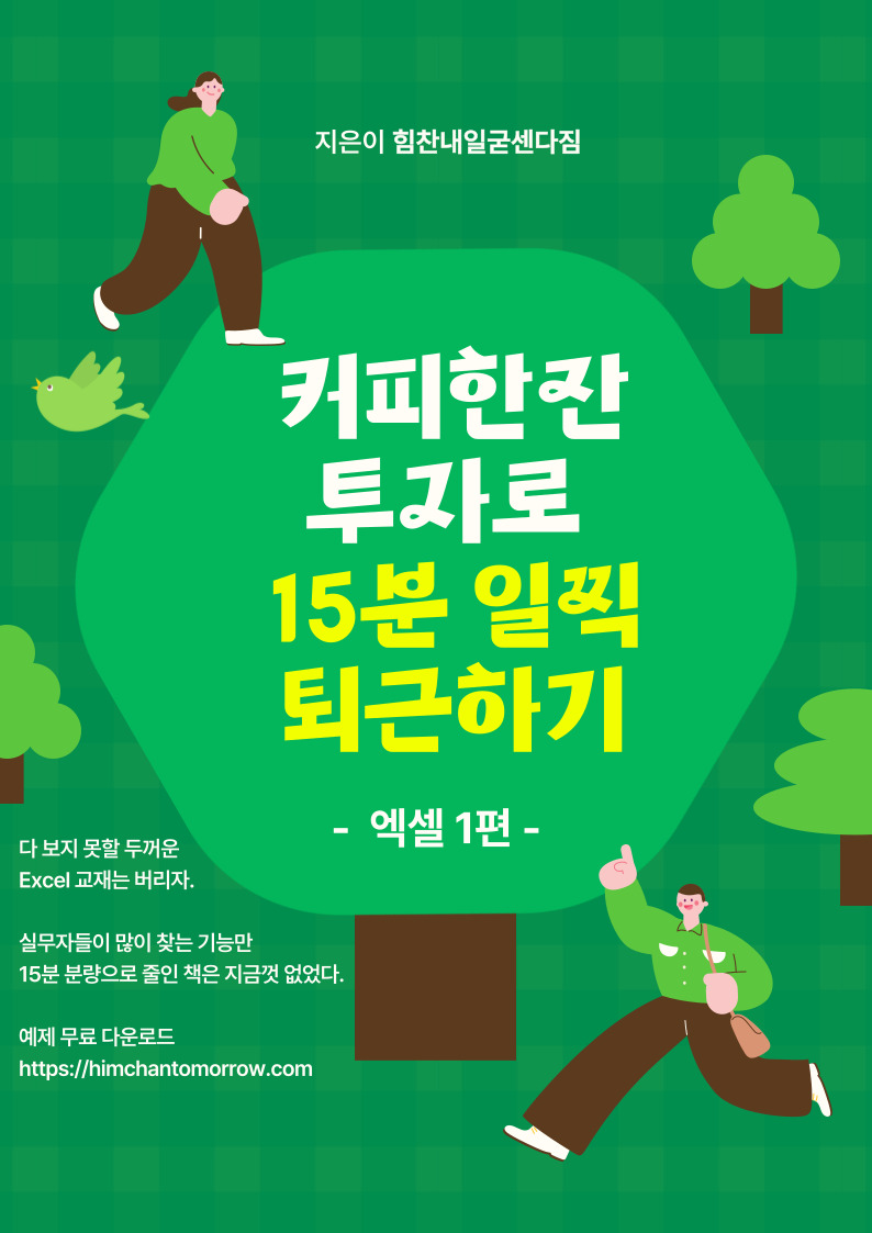 | 커피한잔 투자로 15분 일찍 퇴근하기 -엑셀 2편- 전자책 무료나눔 (0) | 2023.11.18 |