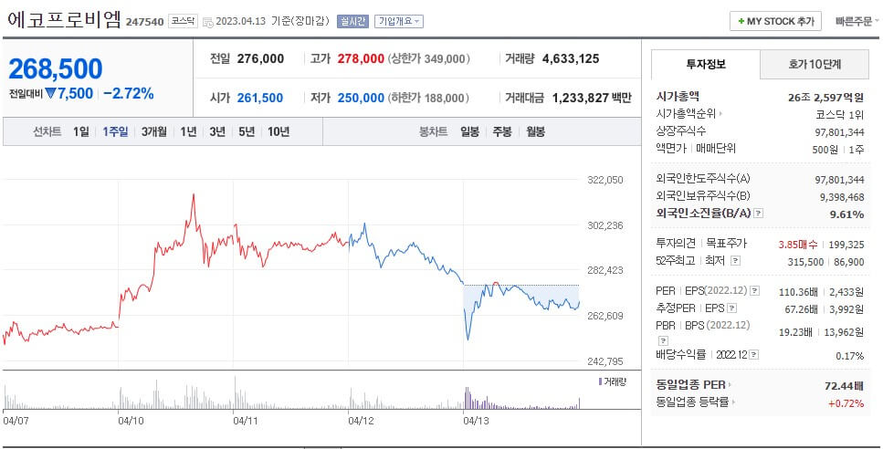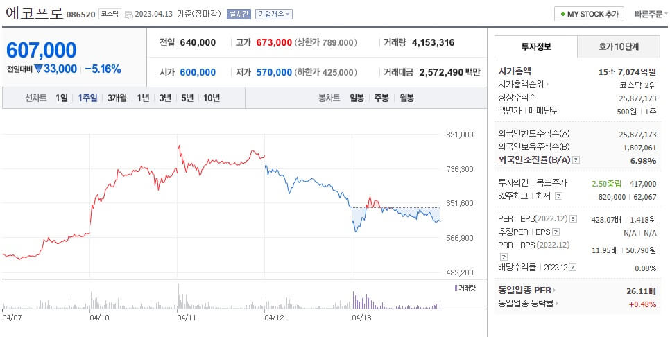 에코프로 주가